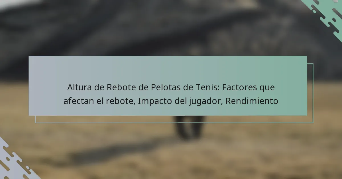 La altura de rebote afecta significativamente el rendimiento del jugador al influir en la selección de golpes y la estrategia general. Los jugadores deben adaptar sus técnicas según la altura a la que rebota la pelota, lo que puede variar dependiendo de la superficie de la cancha y las condiciones ambientales.